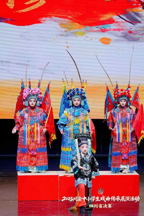 1月31日,由中共四川省委宣传部、中共重庆市委宣传部等多单位共同主办的2025川渝中小学生戏曲传承展演汇报演出暨颁奖仪式在成都举行。广安市选送的参赛作品《红五星军号》《穆桂英打雁》凭借精湛的技艺与独特的艺术风采,从川渝众多节目中脱颖而出,斩获殊荣,展现了广安青少年传承中华优秀传统文化的蓬勃力量。