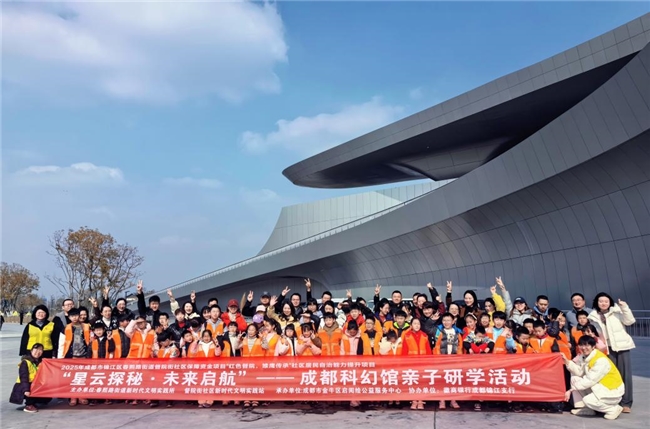 2026年2月1日下午,春熙路街道督院街社区联合成都市金牛区启阅绘公益服务中心,在成都科幻馆(郫都区科创新城)成功举办“星云探秘·未来启航”亲子研学活动。活动旨在通过沉浸式科幻科普体验,激发青少年科学兴趣,培育创新思维,深化“红色督院·雏鹰传承”品牌内涵。