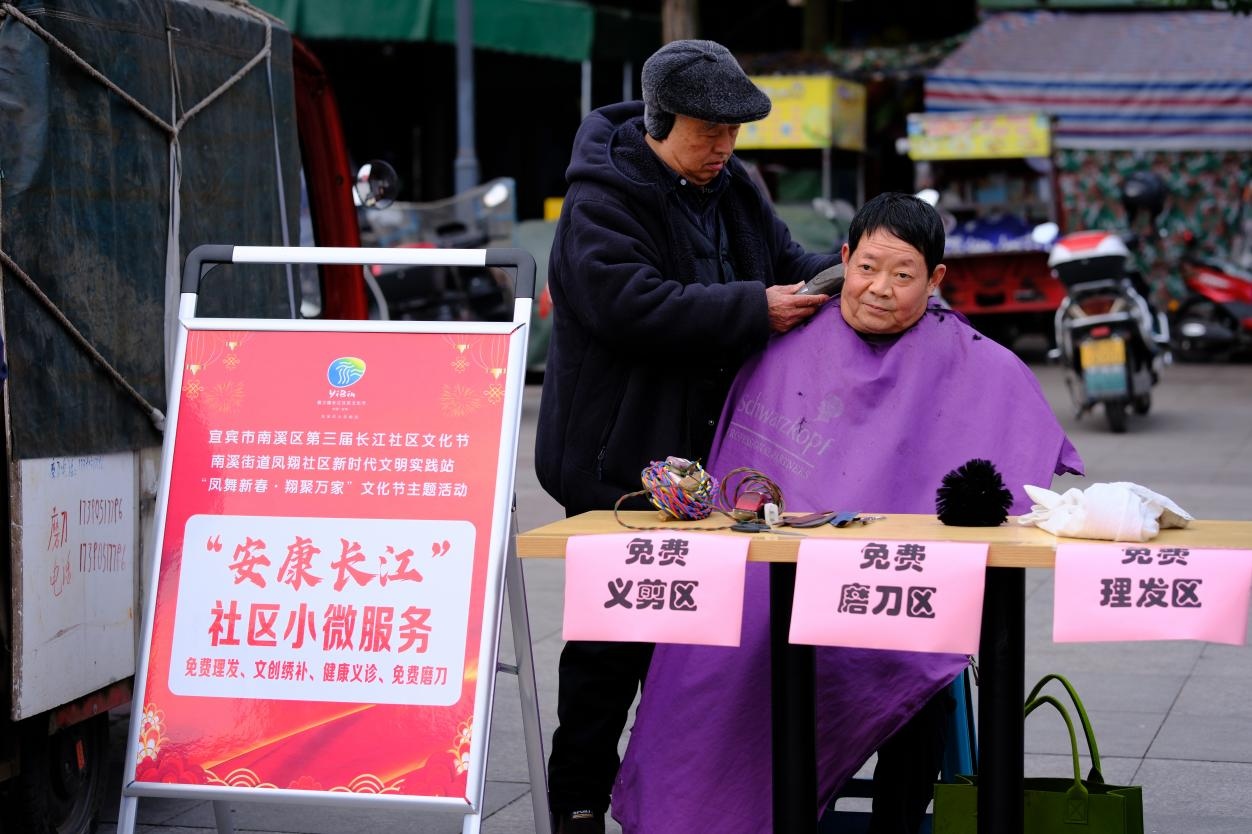 “安康长江”小微服务,便民惠民暖人心。聚焦居民实际需求,社区在活动现场设立“安康长江”便民服务专区,提供免费理发、磨刀、绣补、义诊四项贴心服务。理发师耐心细致地为老年人修剪发型,磨刀师傅将居民送来的刀具打磨得锋利如新,绣补艺人用巧思修补衣物破损处,医护团队则为居民提供血压测量、健康咨询、用药指导等服务。志愿者们热情周到的服务赢得居民一致好评,累计服务超300人次,用实际行动践行“我为群众办实事”的理念,让便民服务真正走进千家万户。