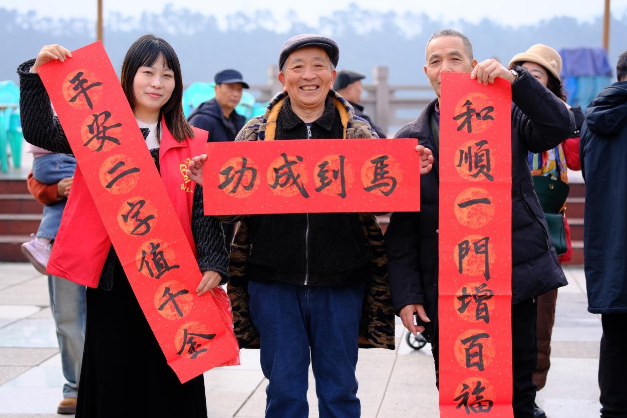 “墨润长江”春联送福,笔墨飘香迎新春。“墨润长江”手写春联送福活动人气高涨,社区邀请书法爱好者冯老师现场挥毫泼墨,为居民免费书写春联。“龙腾瑞气临门第,凤舞春风入万家”“长江潮涌千帆竞,社区和谐百业兴”,一幅幅寓意吉祥的春联,既饱含对新春的美好期许,又融入长江文化元素,承载着社区对居民的真挚祝福。活动累计送出春联200副,红纸黑字间传递着浓浓的年味与温情,让传统民俗文化在社区落地生根。