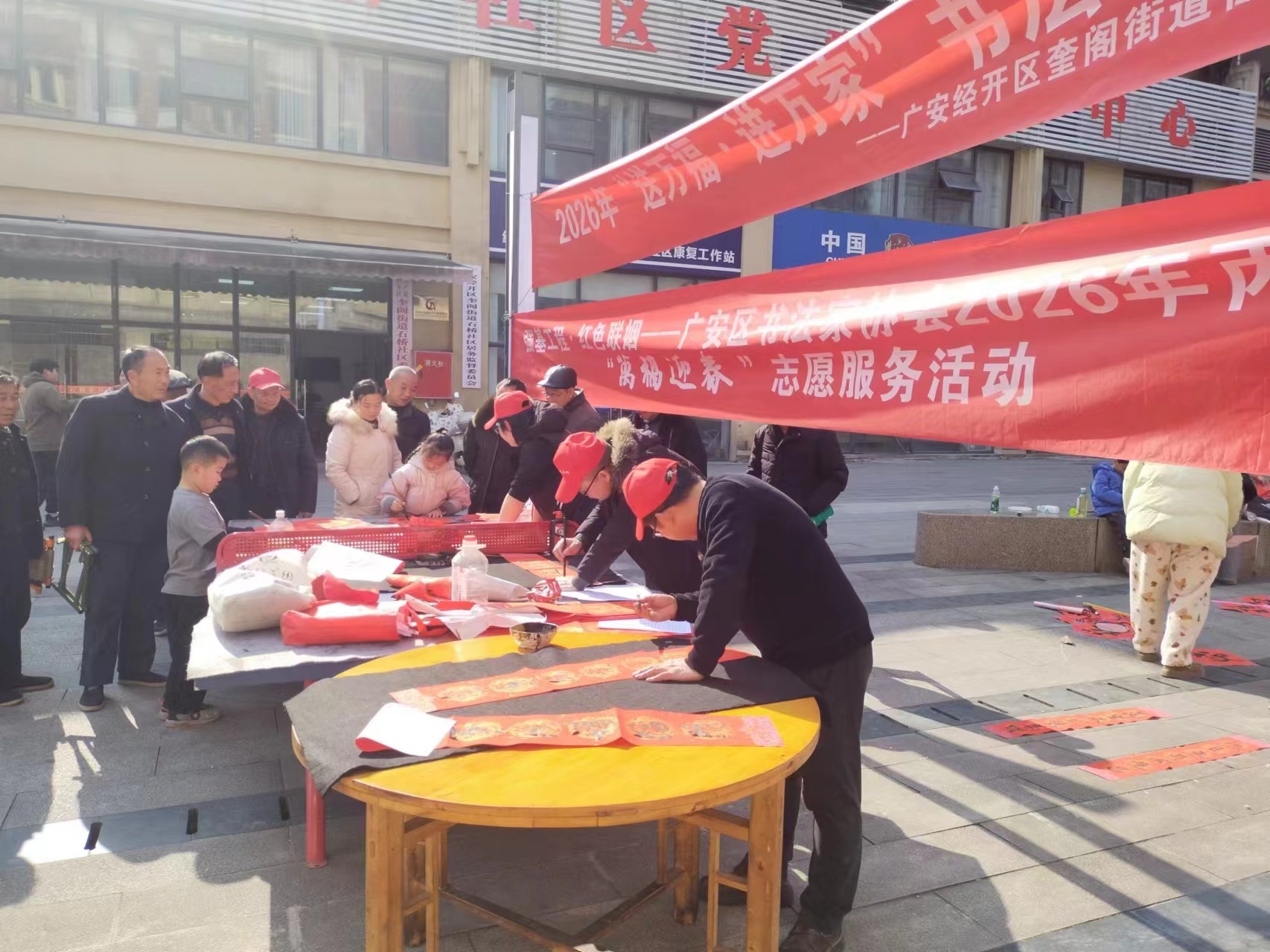 为营造欢乐祥和的春节氛围,传承弘扬中华优秀传统文化,2月6日,奎阁街道社区联合工会在石桥社区开展“送万福·进万家”主题活动,特邀广安区书法家协会成员现场挥春送福。
