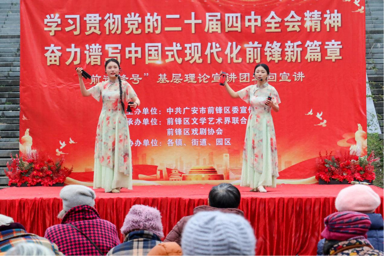 宣讲团紧扣基层实际与群众需求,将全会精神深度融入川剧、快板、评书等文艺形式中,精心创排《我的祖国》《党的二十届四中全会精神传四方》《前锋新事普华章》等节目,同时设置互动问答环节,以“演、讲、问、答”相结合的模式,打破传统宣讲的枯燥感,让理论宣讲更接地气、更具感染力。