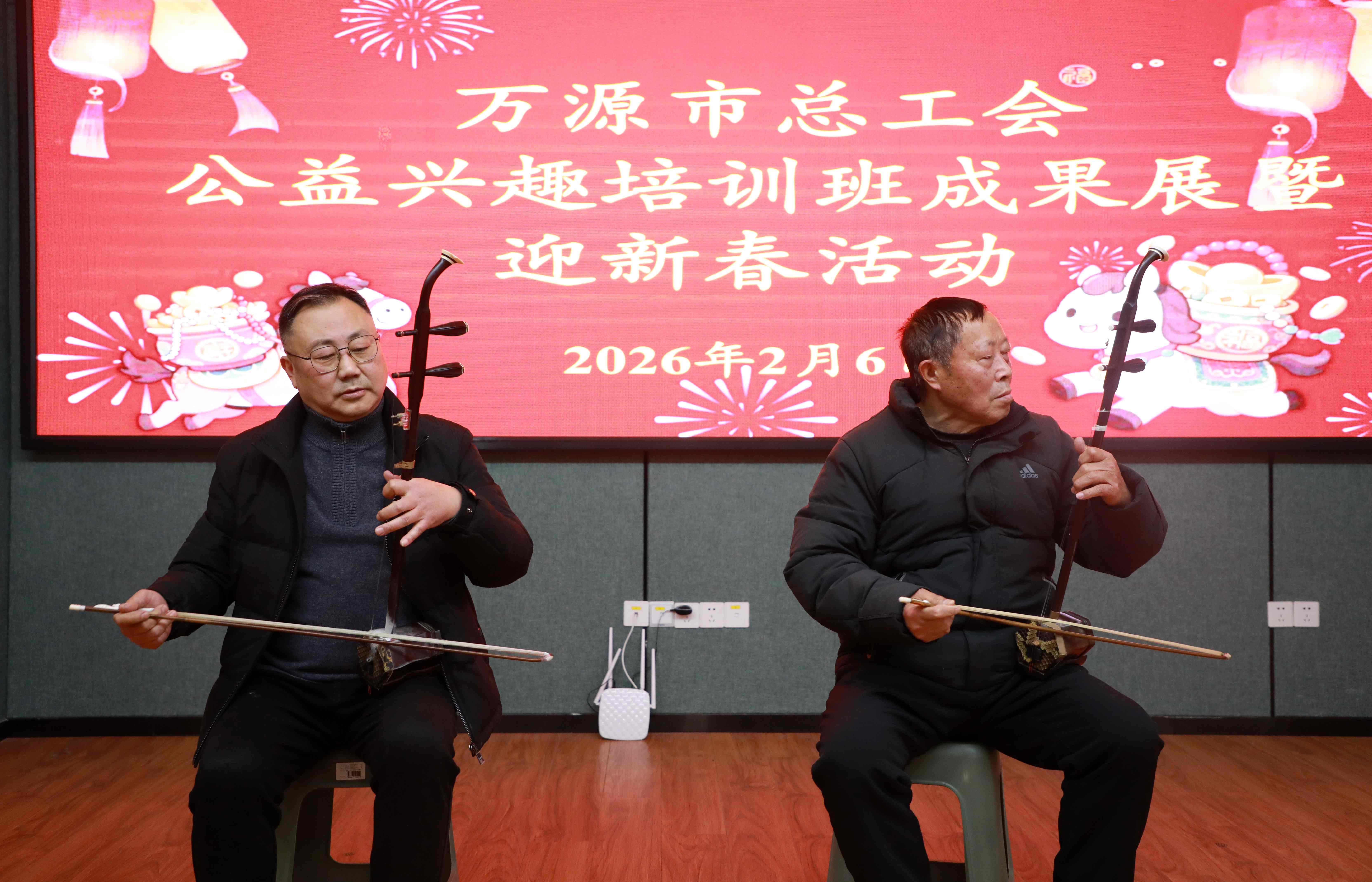 2月6日下午,万源市总工会举办公益兴趣培训班成果展暨迎新春活动,培训班授课老师、学员代表及市总工会机关干部职工齐聚一堂,共赏学习成果、共迎马年新春。