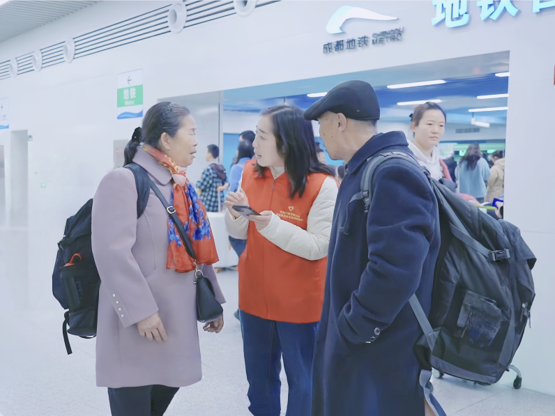 在日均人流量超3万人次的成都西站,青羊团区委设立了青年志愿服务小站,中建六局发展公司“建证未来”青年志愿服务队员化身“暖冬守护者”们全天候值守,为旅客提供精准的出行引导、暖心的行李搬运、细致的购票指导、及时的疑问解答,并设立“暖心补给角”,配备暖宝宝、口罩、热水、应急药品等物资。同时,针对老、幼、病、残、孕等重点旅客,服务队开通“一对一”全程陪护通道,从进站安检到候车登车提供无缝衔接的贴心服务,切实提升旅客出行体验,让春运归途更安心、更温暖。