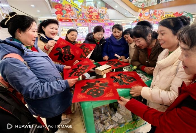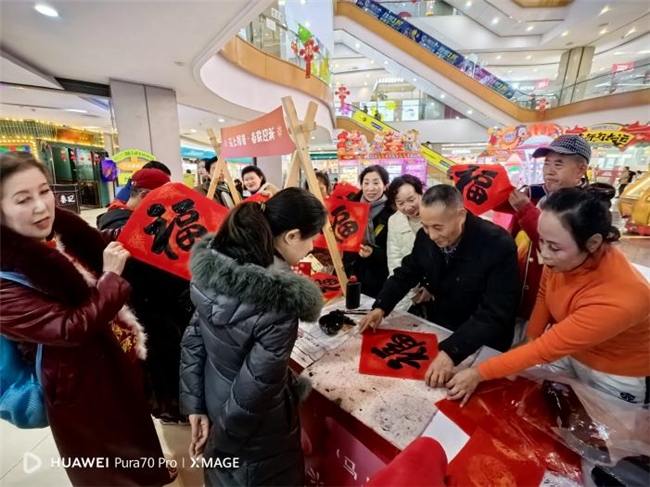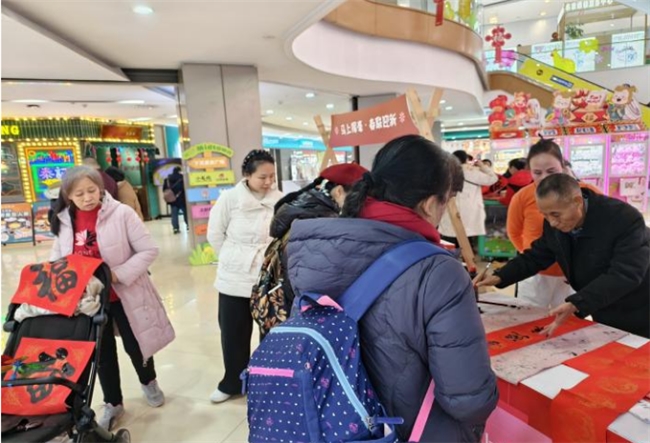 新春将至,年味渐浓。为弘扬中华优秀传统文化,营造喜庆祥和的节日氛围,丰富居民精神文化生活,2月9日,李家沱社区携手成都市成华区鑫芳华文化服务中心,在财富又一城购物中心开展李家沱社区“沱韵新春·福照门庭”春节写春联活动,以笔墨寄情、墨香送福,为辖区居民送上温馨真挚的新春祝福。