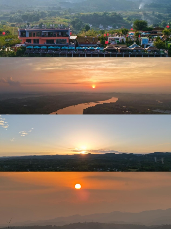 在停车场看到金渔桃缘的石碑,往前走左边走下坡去200米就是沱江第一湾观景台。