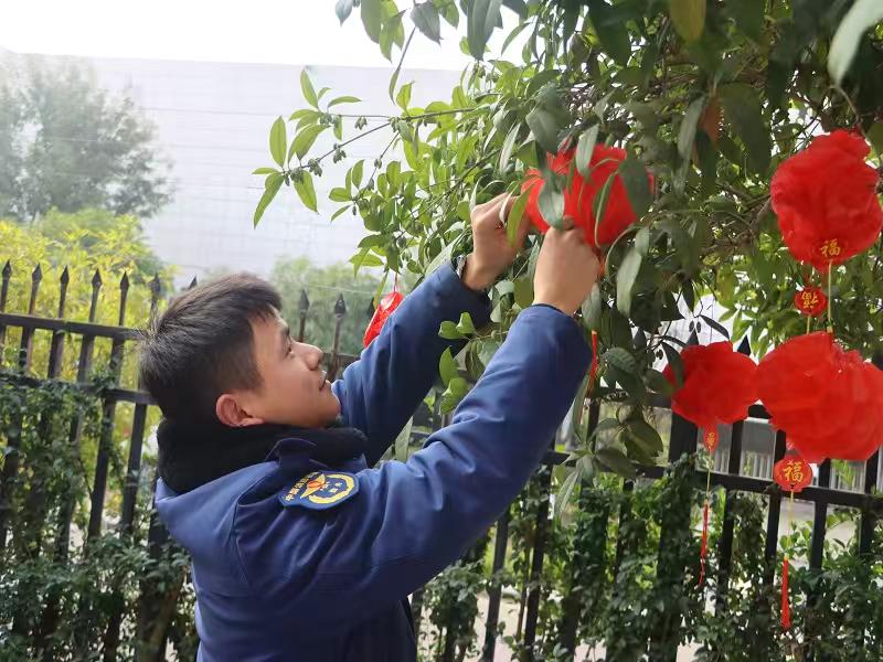 装饰过程中,指战员们热情高涨、分工协作,挂起大红灯笼,红灯笼随风摇曳,春联墨香四溢,营区内外顿时焕发出浓浓的“年味”将春联福字精心张贴,彩灯缠绕在营区树木和走廊栏杆上,不少指战员发挥创意,用窗花、拉花点缀门窗,动手制作简易的节日装饰品,营区内欢声笑语不断,处处洋溢着欢乐祥和的气氛,大家一起动手布置营区,就像在家里贴春联一样,心里特别暖,这一刻,营区不再只是训练与备战的场所,更成为大家共同的“家”。