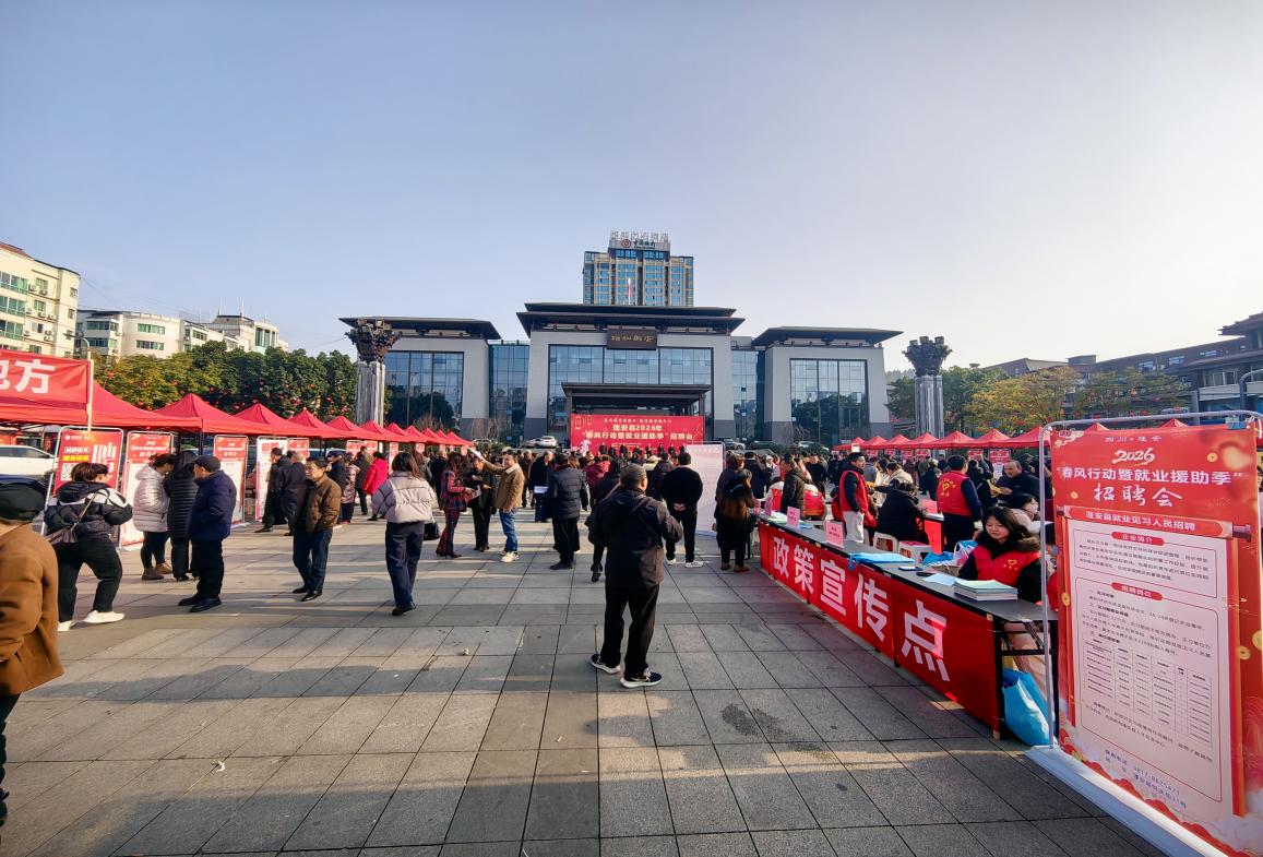 2月11日,蓬安县2026年“春风行动暨就业援助季”大型现场招聘会在相如广场火热启幕。本次活动以“促就业”为核心主题,吸引广大求职者、用工企业与社会各界广泛关注,现场氛围热烈。