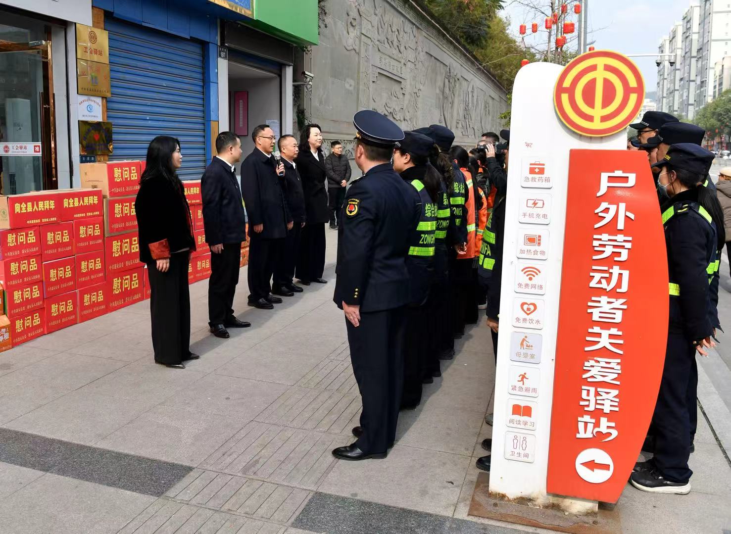 县委常委、总工会主席陈雅麒带队前往马电公司和南运蓬安分公司看望慰问春节值班人员,为职工送去了方便面、牛奶、面包、水果等慰问物资,了解企业生产运营和春节期间的运输保障情况,鼓励大家坚守岗位,做好服务,确保春节期间各项工作有序开展。