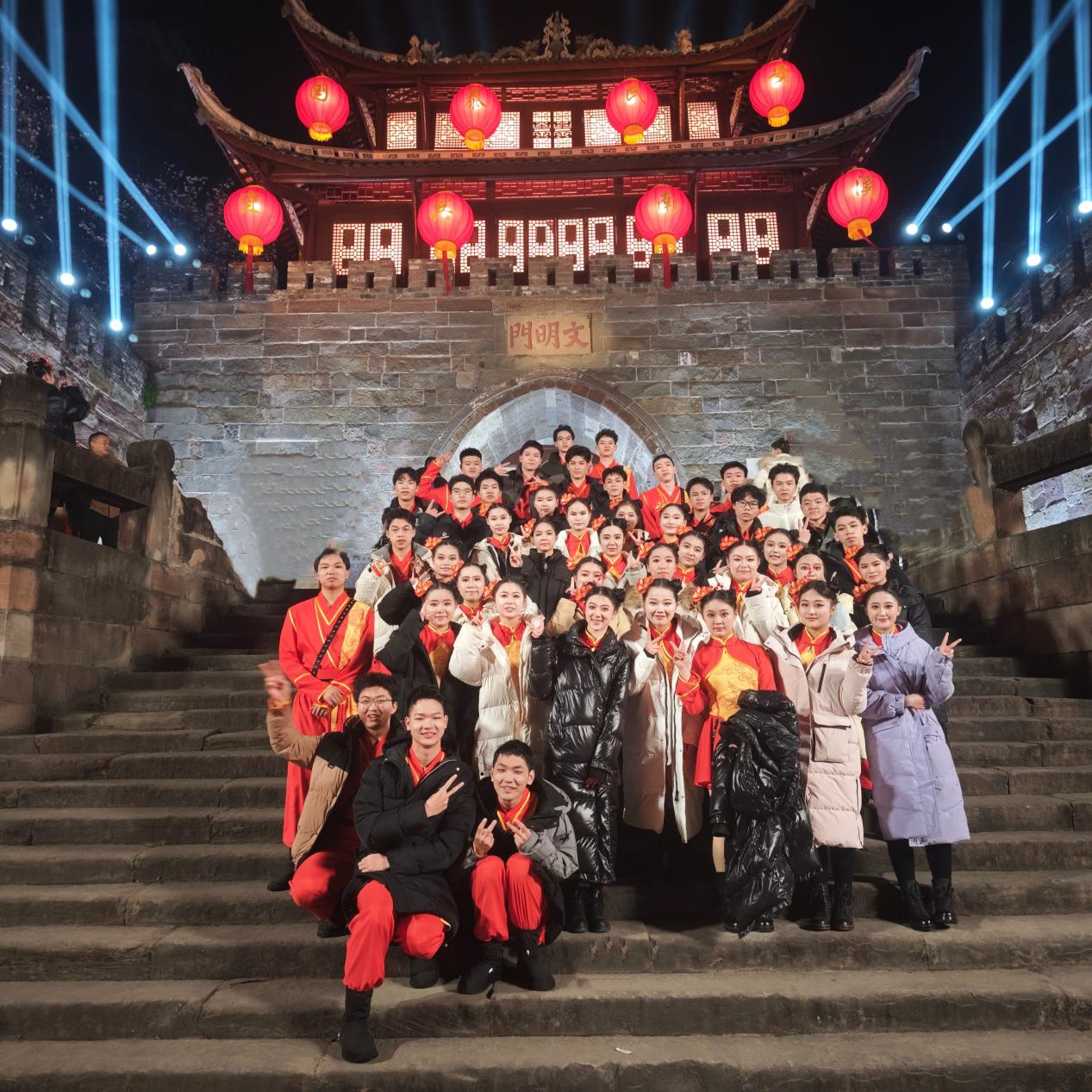 除夕之夜,当央视春晚镜头扫过那群青春身影时,南溪二中师生家长沸腾了。73名学子作为主唱歌手伴舞,将宜宾南溪非遗元素融入舞蹈编排,伴舞《小彩龙》用艺术语言讲述家乡故事,传递文化自信。从平时认真刻苦排练到国家级舞台,学子们既展现了艺术素养,更成为地方文化的传播使者。