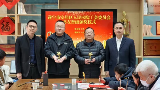 新春将至,墨韵飘香,书香满溢。为丰富职工精神文化生活,传承中华优秀传统文化,2月13日下午,安居区人民医院工会以“书画集福·书香贺岁”为主题,在第三住院大楼一楼职工书屋开展2026年书友见面会暨书画迎新春活动,在家班子成员、全院书友、书画爱好者及职工家属欢聚一堂,在笔墨书香中共迎新春,感受别样的节日氛围。