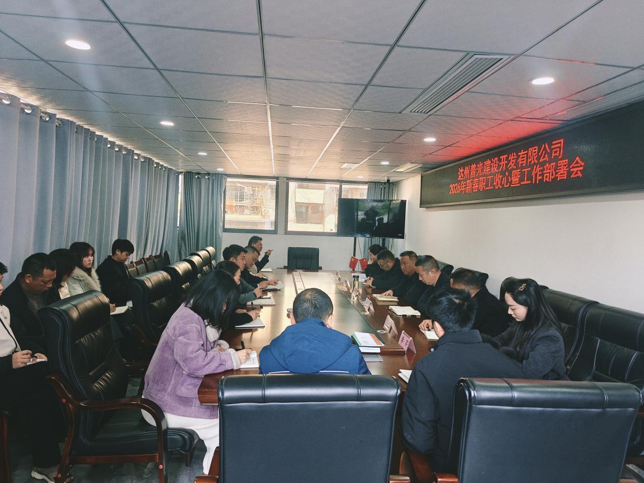 为迅速扭转节后工作状态,全面部署2026年度重点任务,2月24日,达州普光建设开发有限公司召开春节收假收心暨工作部署会。会议深入动员全体职工发扬龙马精神,以饱满热情、务实作风收心归位、铆足干劲,为推动公司全年各项工作起好步、开好局凝聚强大合力。
