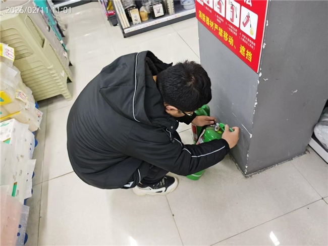 除夕的清晨,集镇的年味已经很浓,我却先扎进了一家家商超和店铺。在一家超市里,我蹲下身,仔细检查着每一个灭火器的压力表、有效期和摆放位置,对照 “消防器材严禁移动、遮挡” 的警示,逐一核对记录。