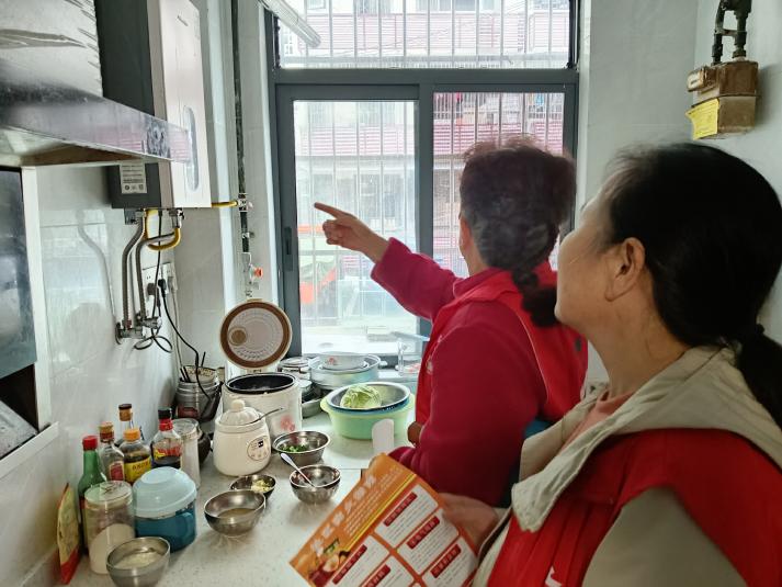 “没想到家里还有这么多安全隐患,谢谢你们提醒。”居民李阿姨在志愿者帮助下排除了厨房燃气软管老化隐患。