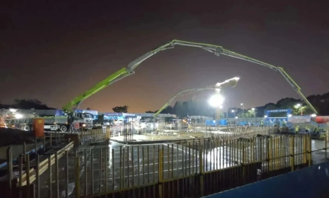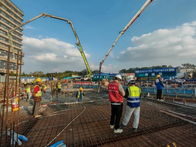 一是交通组织“微循环”,不让施工堵了民心路。通过错峰运输、分段配送,制定精细化运输方案,主动避开早晚高峰,最大限度减轻对城市交通的影响,实现施工与通行两不误。二是场地利用“极限化”,向每一寸空间要效率。贯彻“永临结合”理念,将部分永久道路与管网提前投用;推广预制装配式临时道路,实现“即铺即用、可拆可移”,大幅提升场地周转效率,节约成本。三是地铁保护“毫米级”,安全底线不容失守。在地铁隧道上方布设自动化监测网,24小时实时监控沉降数据;采用轻量化设备、分层开挖、快速支护等工艺,以“毫米级”管控确保地铁运营绝对安全。四是塔吊缺失“巧替代”,智慧破解空中禁区。受航空管制影响,项目创新采用“汽车吊+随车吊”协同作业,结合模块化预制构件施工,减少高空吊装需求,以“化整为零”的巧思推进主体结构建设。