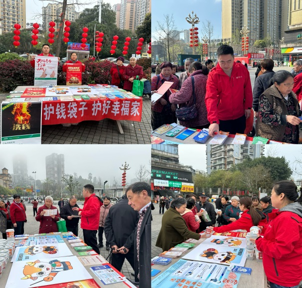 推动金融护航进商圈,广泛宣传固防线。公司驻点恒旭金座广场集中宣传,通过挂横幅、发折页、现场答疑等形式,向商圈群众普及反洗钱、非法集资、反诈及扫黑除恶等知识,有效营造声势、扩大影响。推动金融服务进社区,消保知识暖人心。公司宣传队伍深入中梁壹号院社区,面向居民讲解反诈、反洗钱等常见骗术,手把手传授识别技巧,让金融消保知识贴近群众、深入人心。推动金融科普进校园,助力家校保安全。公司在洪谟小学门口设置集中宣传点,面向学生及家长开展金融安全科普。结合校园典型案例,重点讲授反洗钱基础知识及网络安全防范知识,切实提升青少年及家长的金融安全防范意识与自我保护能力。推动金融保险进企业,赋能员工护资产。在宜宾天然气发展有限公司,工作人员认真细致地为一线员工讲解保险知识、个人资产安全、账户规范使用及非法集资风险点,帮助员工提高自我防护能力。推动金融保障进乡村,养老防诈惠民生。宣传队伍进驻思坡镇望江村,为村民普及金融消费八大权益与防骗知识,重点针对留守老人开展养老诈骗警示教育,让金融安全知识扎根乡村。