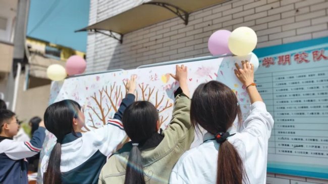 仪式感满满,同学们用多彩指纹为 “善意之树” 添加片片新叶,在约定墙郑重签名,许下温暖约定,每一个印记都是守护校园友善的坚定承诺。