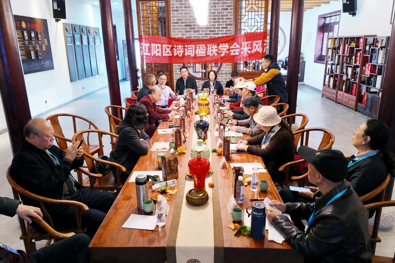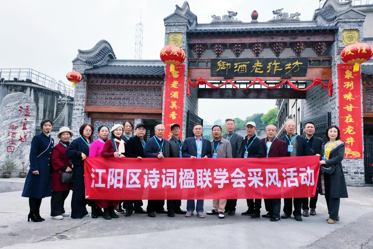 诗酒铸魂·御酒飘香。3月26日,泸州市江阳区诗词楹联学会组织泸州市诗词学会、江阳区诗词楹联学会第四组的10余位诗人、书法家、画家走进泸州市龙马潭区特兴街道罗沙村的泸州御酒老作坊有限公司,开展春天诗会暨采风交流活动,共赴诗酒交融的春日之约。