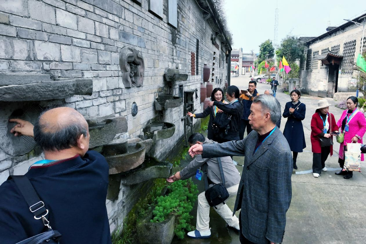 “今日与诗友同访泸州御酒老作坊,窖池仿佛藏着悠悠时光,特凌、德龙古井静谧幽然,坡上香樟林亭亭如盖、郁郁葱葱。当诗心邂逅酒魂,才深切体会到,井泉、窖泥、古木共同酿就的,不仅是杯中那醇厚的美酒,更彰显着蓬勃的龙马精神。岁月悠悠,沉淀出醉人沉香,文化脉络也在这方天地间绵延不息。”诗人梅蓝心说。
