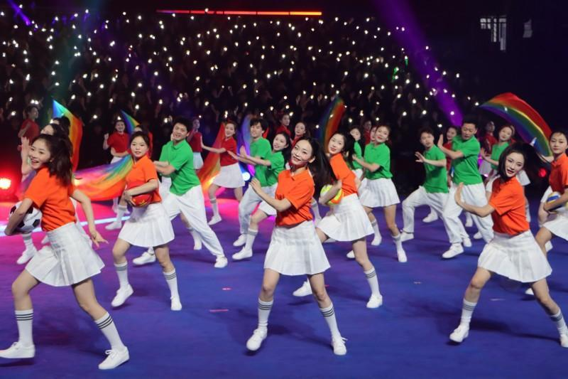 开场文艺展演融合光影艺术与情景表演,600名演员组成手灯光影矩阵,以倒计时点亮全场;音舞诗画串联广安、内江、宜宾三地文化特色,演绎“三城共绘川”的同心篇章;原创节目《立上游》唱响宜宾奋进姿态;群众体育情景演绎、健身气功、广场舞、太极拳等群众喜闻乐见的体育项目轮番登场;歌舞《“韵”动四川》活力四射,将现场气氛推向高潮。