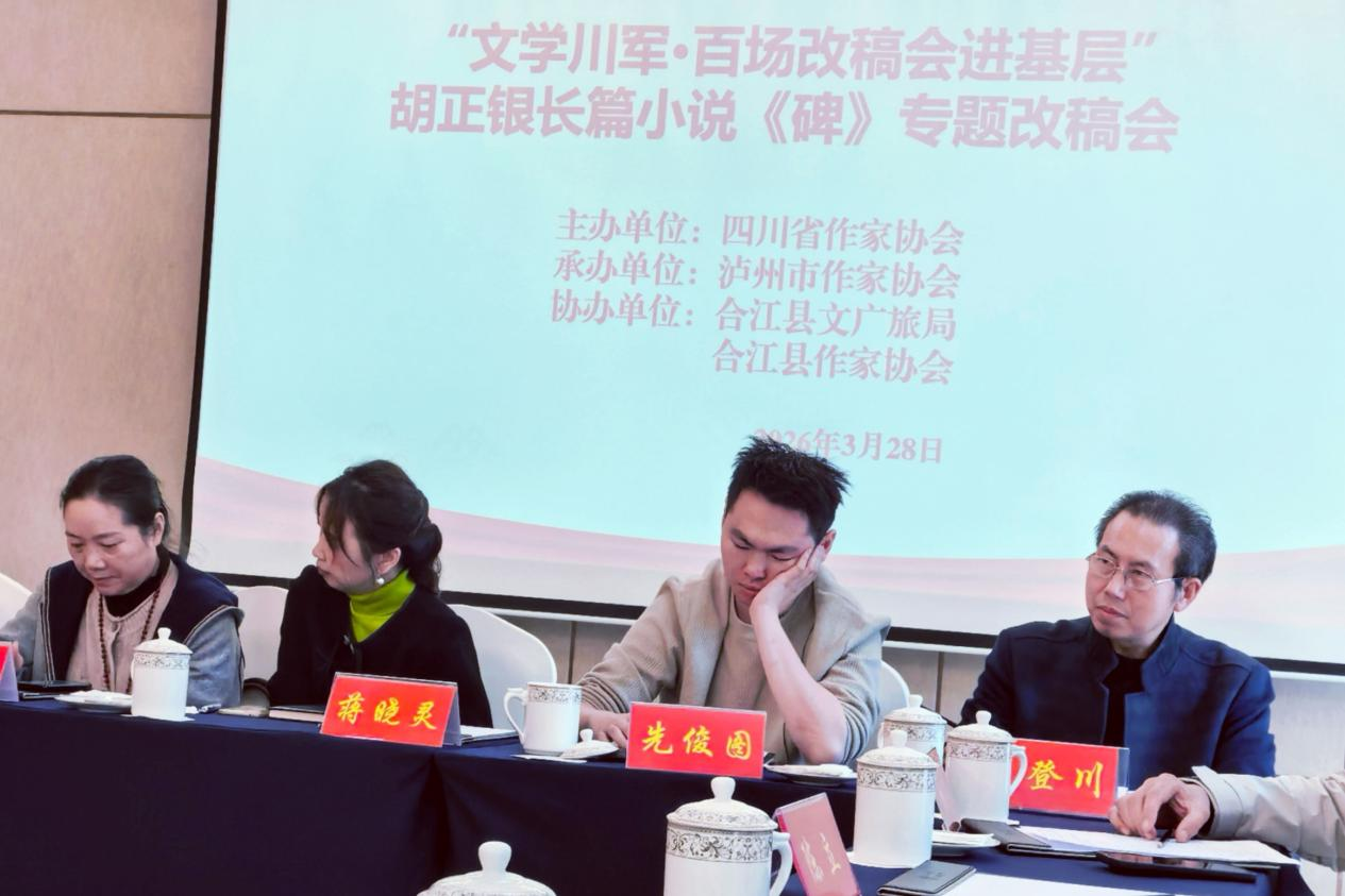 3月28日,由四川省作家协会主办,泸州市作家协会承办,合江县文化广播电视和旅游局、合江县作家协会协办的“文学川军·百场改稿会进基层”--胡正银长篇小说《碑》专题改稿会在泸州市合江县江语兴酒店成功举行。