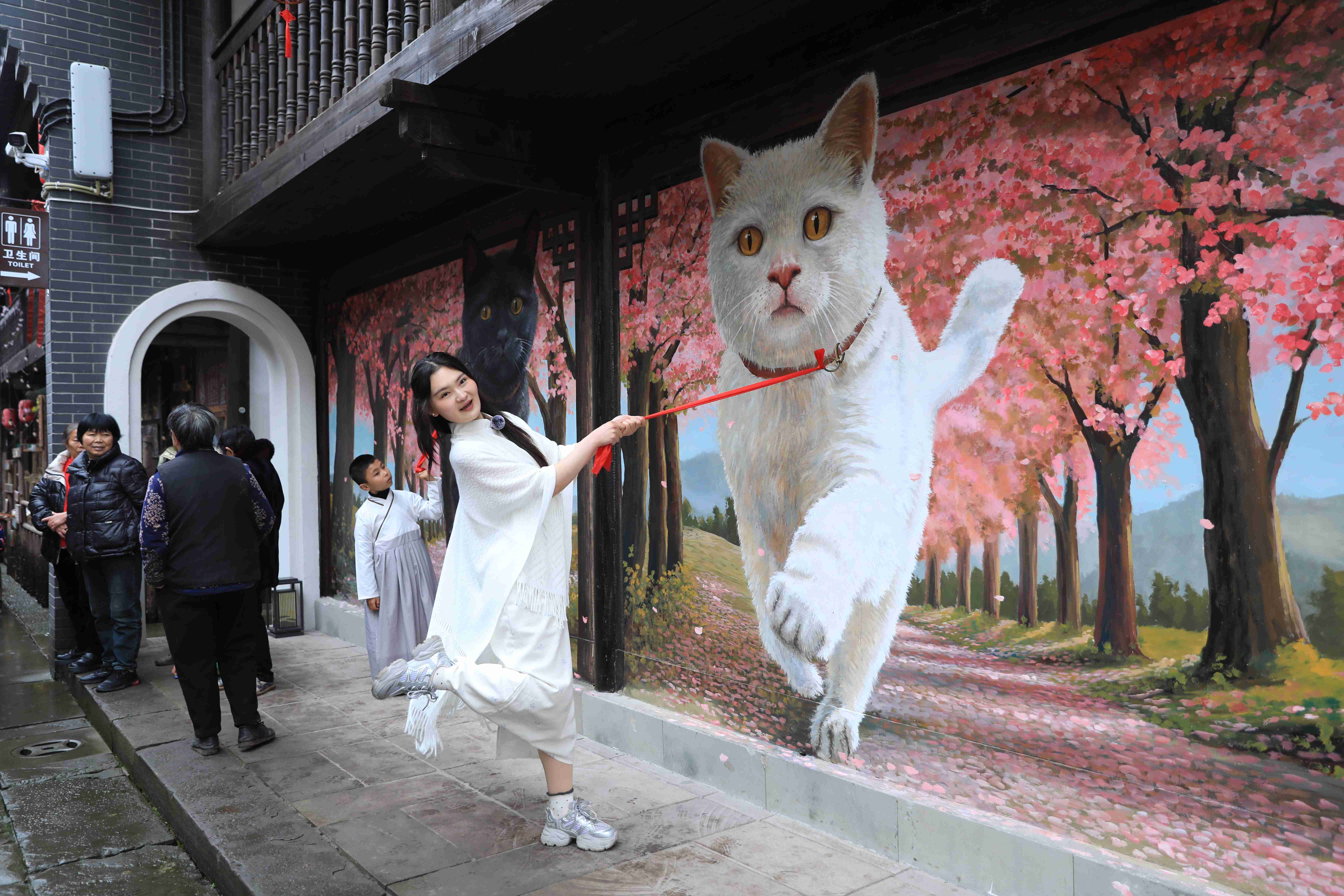 协兴老街承载着160余年的川东民居记忆,青砖黛瓦间藏着岁月沉淀的烟火气息。此次全新亮相的3D画长街,以老街为天然画布,将川东民俗风情、广安本土元素、川剧非遗魅力三大特色元素巧妙融合,用立体生动的画面,串联起改革开放以来的民生变迁、农业增收致富的奋斗图景、实干兴邦的时代精神。