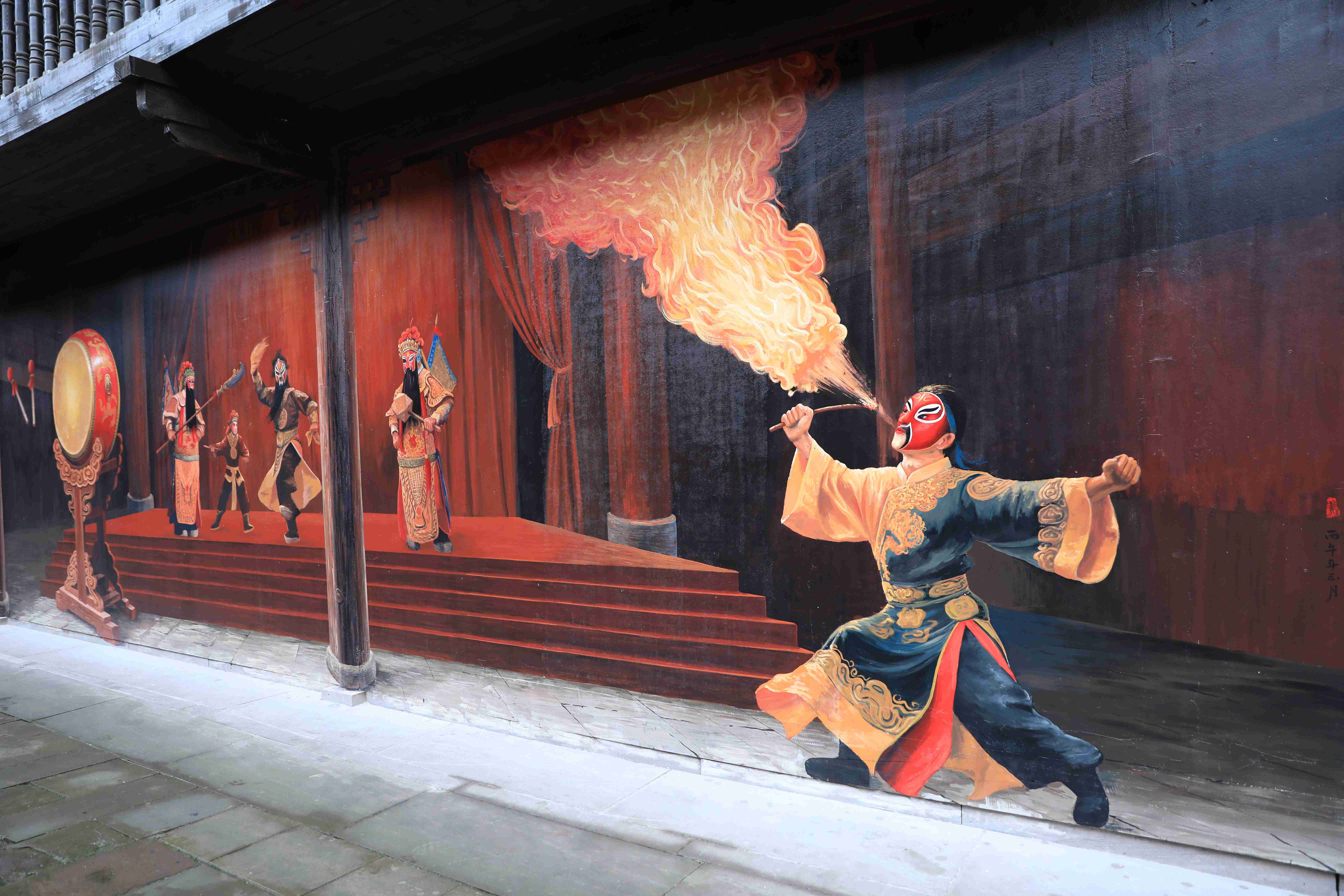 漫步长街,一步一景。栩栩如生的3D画作与古朴老街相映成趣,画里有建川小酒的醇香,有广安柚的清甜;有磨豆浆、杀年猪这些充满烟火气的老场景,有聚友源喝茶聊天的市井温情;这些画里既有川东农耕文化的质朴韵味,又有非遗川剧的灵动神韵,更有时代发展的鲜活印记,让百年老街在创意赋能下焕发新生机,成为广安又一文旅打卡新地标。