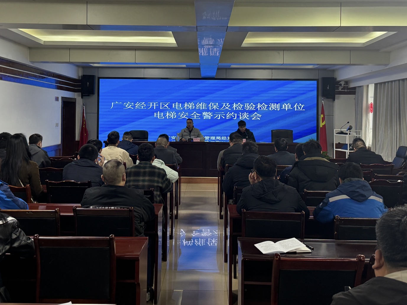 广安市市场监督管理局经开区分局召开电梯维保及检验检测单位安全警示约谈暨《四川省电梯安全条例》宣贯会
