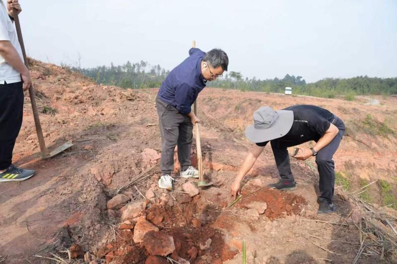 上午8时,参与人员准时在医院第一住院大楼急诊科入口处集合,统一乘车前往活动地点。到达汪家镇林丰片区后,党员干部们迅速投入植竹劳动中。大家三五成组,分工协作,配合默契——挥锹挖坑、扶苗定植、分层填土、提水浇灌,每一道工序都认真细致、一丝不苟。现场气氛热烈,党徽在春日阳光下熠熠生辉,汗水浇灌下的新竹苗迎风挺立,为昔日山坡披上了崭新的绿装。