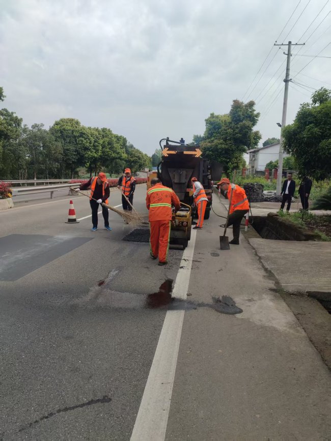 此次专项修补行动聚焦老旧破损县道、群众高频通行路段,精准发力、全域覆盖。重点对县道X127(义紫路、义盐路段)32.5公里,县道X132(紫岩至关文段)2.3公里,县道X135(青狮至双洛、回龙至罐垭段)9.3公里,县道X142(仁和至双江段)8.2公里开展集中病害整治,同步对全县其他零星老旧破损路段进行全面修补,累计整治公路总里程近70(69.1)公里。施工过程中,该局科学调配人力物力,投入沥青路面综合养护车1台、运输车及皮卡车辆数台,组织施工人员100多人次,严格按照公路养护技术规范,对路面坑槽、龟裂、沉陷等病害进行切割、清理、摊铺、压实,确保修补路面平整牢固、行车舒适,从源头消除道路安全隐患。整个工期历时近四周,养护人员抢工期、保质量,高效完成既定修补任务。