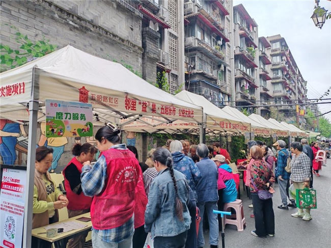 成都市锦江区五昭路“春满家园·锦市惠民”便民集市热闹开市,“零距离”服务温暖邻里心