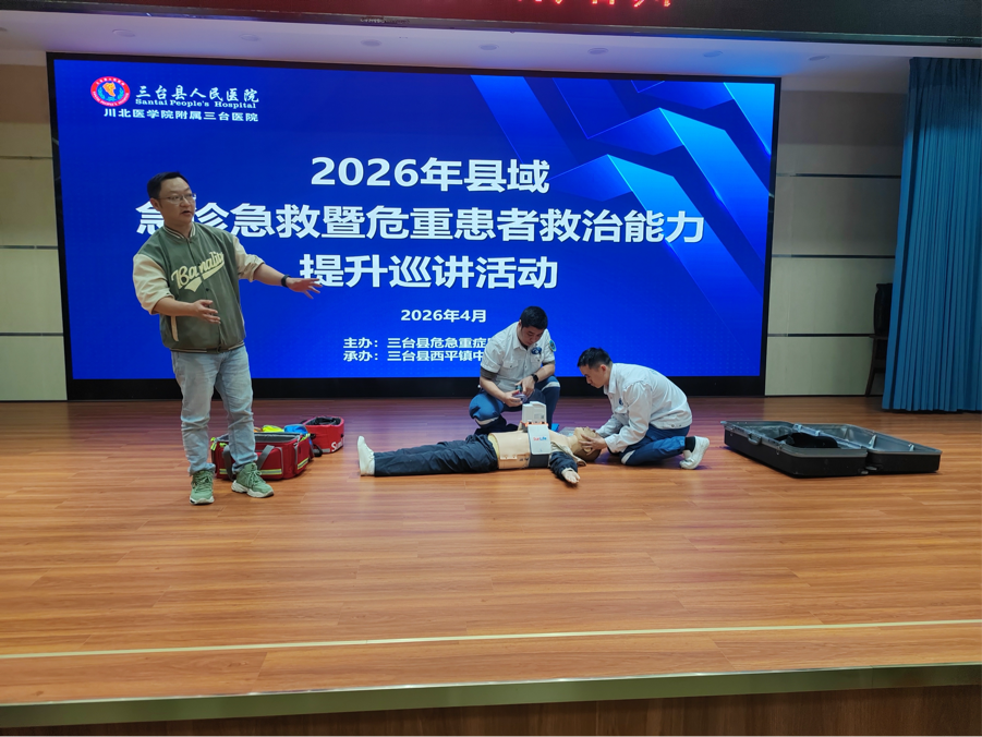为全面提升基层医务人员应急救治水平,夯实院前、院内急救工作基础,4月15日,三台县人民医院走进西路片区,开展急诊急救暨危重患者救治能力提升专题巡讲活动。