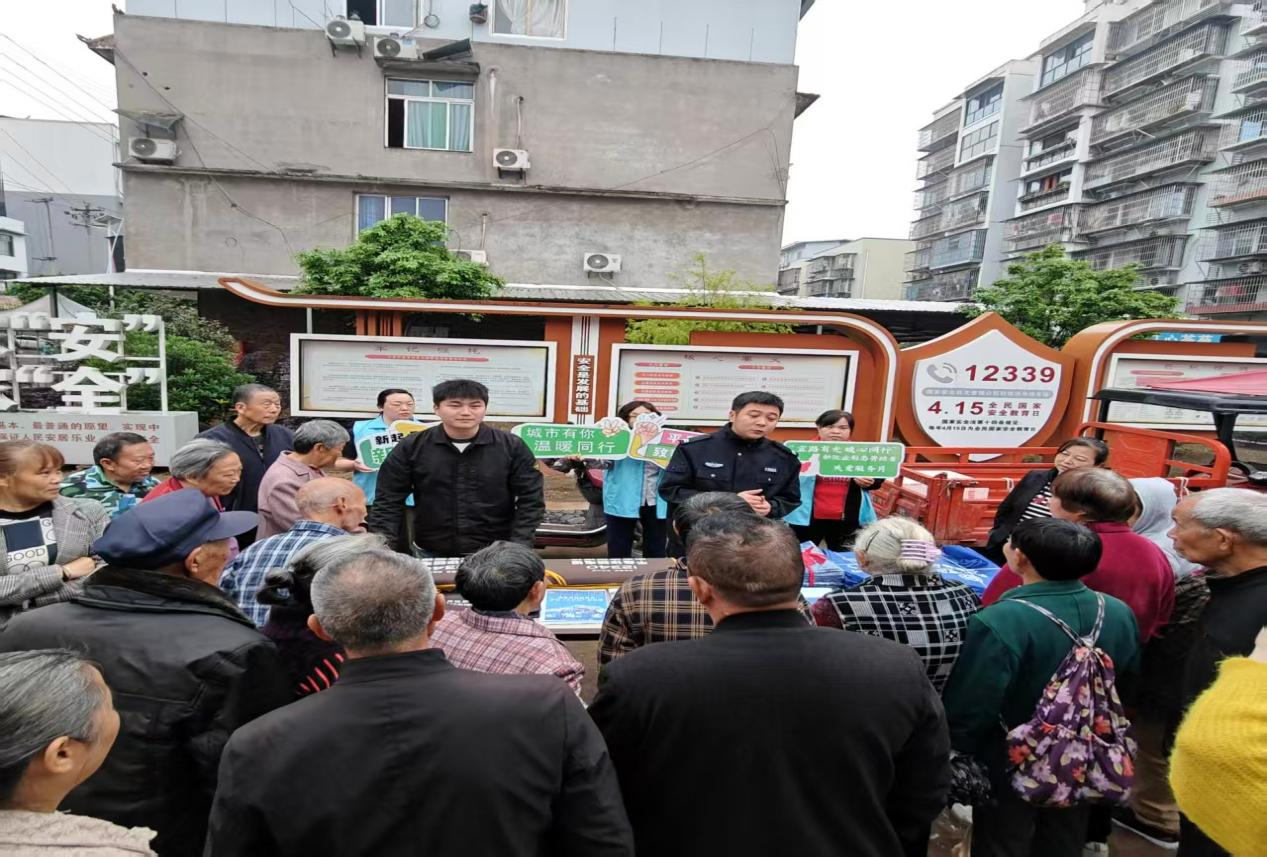 “老乡们,来了解下防汛知识哦!免费发宣传手册,还有实用小礼品,多了解点知识,就能多一份安全保障。”为切实筑牢辖区防汛减灾安全防线,提升群众防汛避险意识和自救互救能力,有效防范化解山洪灾害风险,4月16日,高县月江镇应急办联合各办公室组建宣传小组,在福溪社区集市开展防汛减灾及山洪灾害集中宣传活动,将安全知识送到群众“家门口”,把防汛责任落到“心坎上”。
