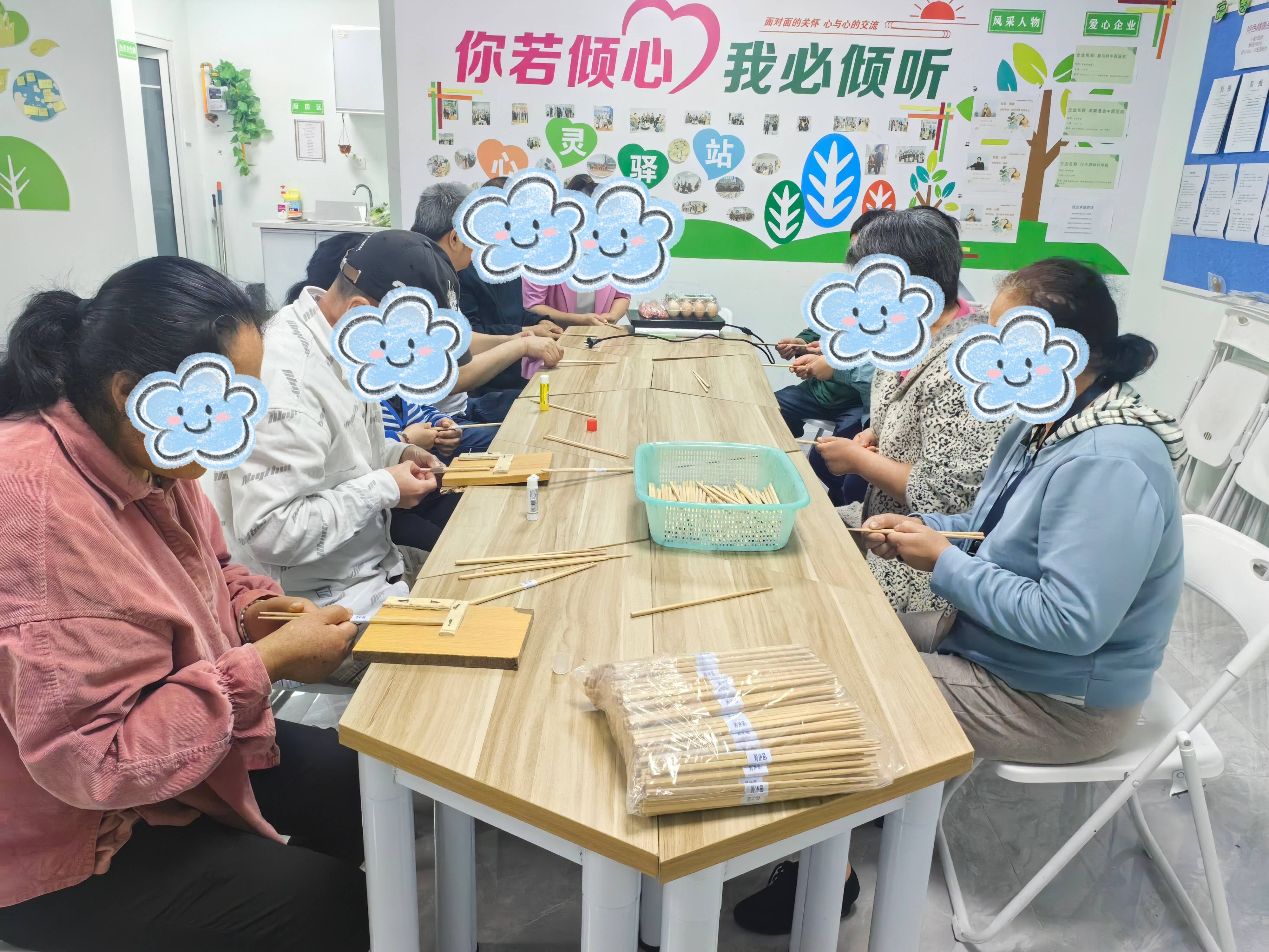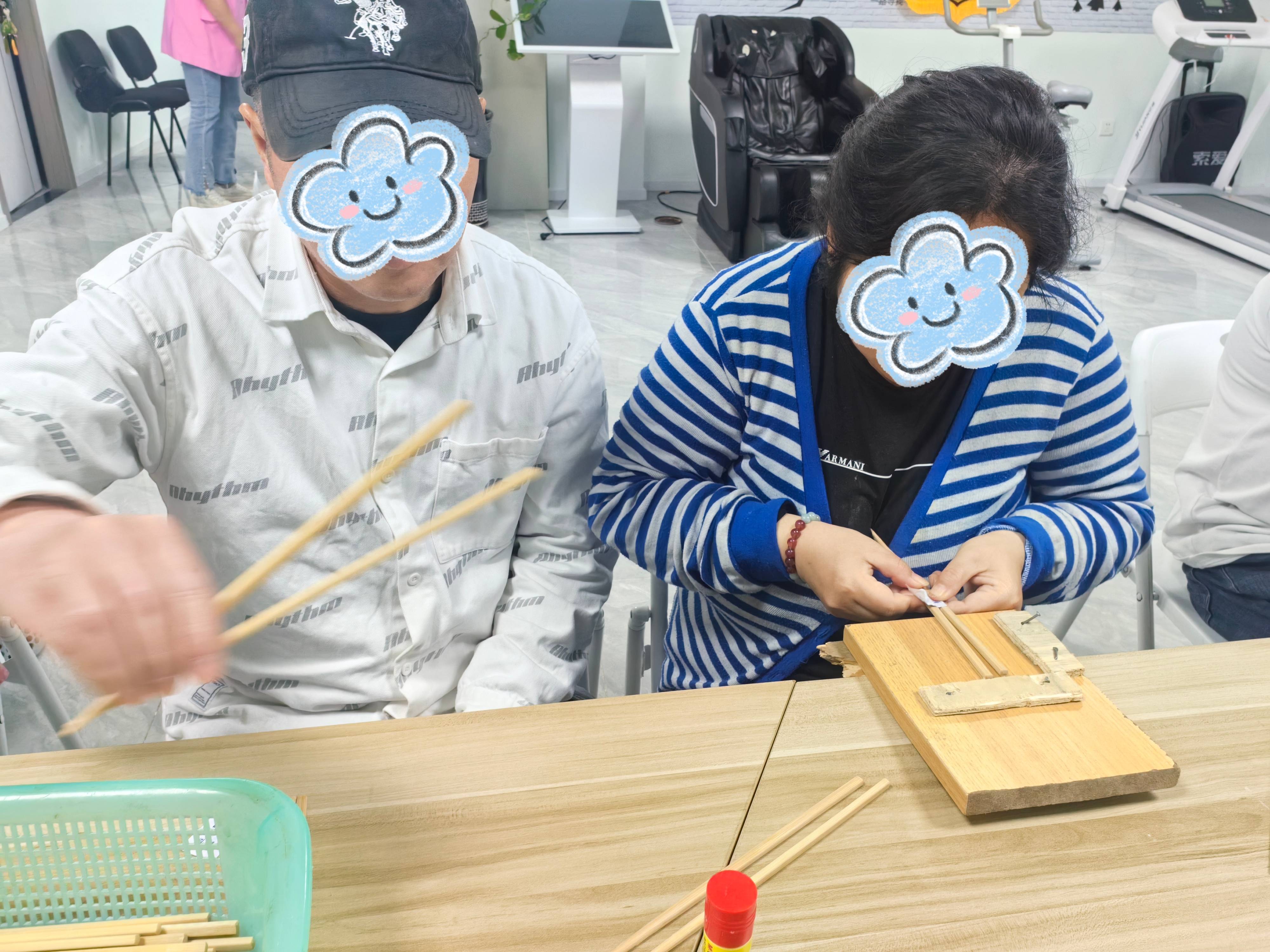 除特色实践活动外,驿站积极拓宽康复者就业实践渠道,主动对接辖区爱心企业,搭建起“驿站+企业”的合作帮扶平台,推出筷子组装代加工等适配性强的职业技能实训项目。通过规范化的岗前培训、严格有序的上下班管理,引导康复者逐步适应职场节奏,养成严谨负责的工作习惯,熟练掌握基础劳动技能。日复一日的劳动实践中,他们不仅收获了实实在在的劳动报酬,更在付出中体会到劳动的价值与乐趣,以更积极、更乐观的心态直面病情、战胜病魔,重拾对生活的热爱。