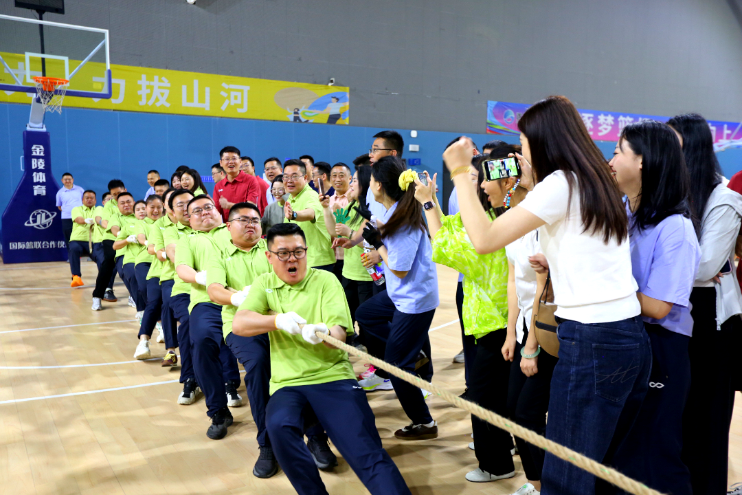 运动会收官之日,篮球、拔河两大重磅赛事火热开赛、高潮迭起。篮球赛场,四支代表队分列季军、冠军争夺战,攻防转换行云流水,战术配合默契无间。队员们疾速穿插跑位、精准传切联动,果断突破上篮、稳健卡位防守,每一次利落投篮、每一次奋力拦防,尽显过硬竞技实力与卓越团队素养。比分交替攀升、对抗紧张胶着,全体队员全力以赴、每球必争,用速度与力量绽放竞技魅力。比赛间隙,活力四射的啦啦操热力登场,动感节拍点燃全场,青春风采闪耀赛场,为紧张激烈的竞技比拼增添了灵动与活力;现场各参赛队代表共同唱响《相亲相爱》,歌声温情真挚、昂扬向上,尽显遂银大家庭和睦相融、温暖洋溢的浓厚氛围。赛场之上激战正酣、看点拉满,场下观众热情高涨、全程助威,呐喊声、欢呼声、掌声此起彼伏,将现场氛围一次次推向顶点。历经激烈角逐,最终资阳分行与简阳支行联合组建的“简资向阳队”凭借过硬实力与出色发挥,斩获篮球比赛冠军。