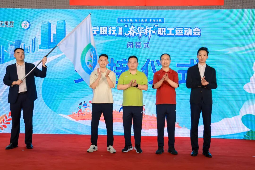 传承拼搏精神,续写奋进华章。随后,庄重肃穆的运动会会旗交接仪式正式举行。在全场热烈掌声中,本届闭幕式承办单位代表、成都分行行长黄家伟,下一届开幕式承办单位代表、总行营业部总经理宋正周依次登台,行党委副书记刘光辉上台授旗。