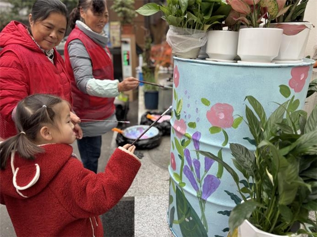 代际绿工坊聚焦 “变废为宝” 实践,围绕收纳、厨余、微景观等主题开展特色活动。居民将外卖盒、奶粉罐、废旧铁桶、厨余边角料等废弃物,改造为收纳工具、创意画作、院落微景观,实现旧物循环利用,有效解决院落闲置废品堆积、绿化空间匮乏等问题,在动手实践中传递资源循环理念。