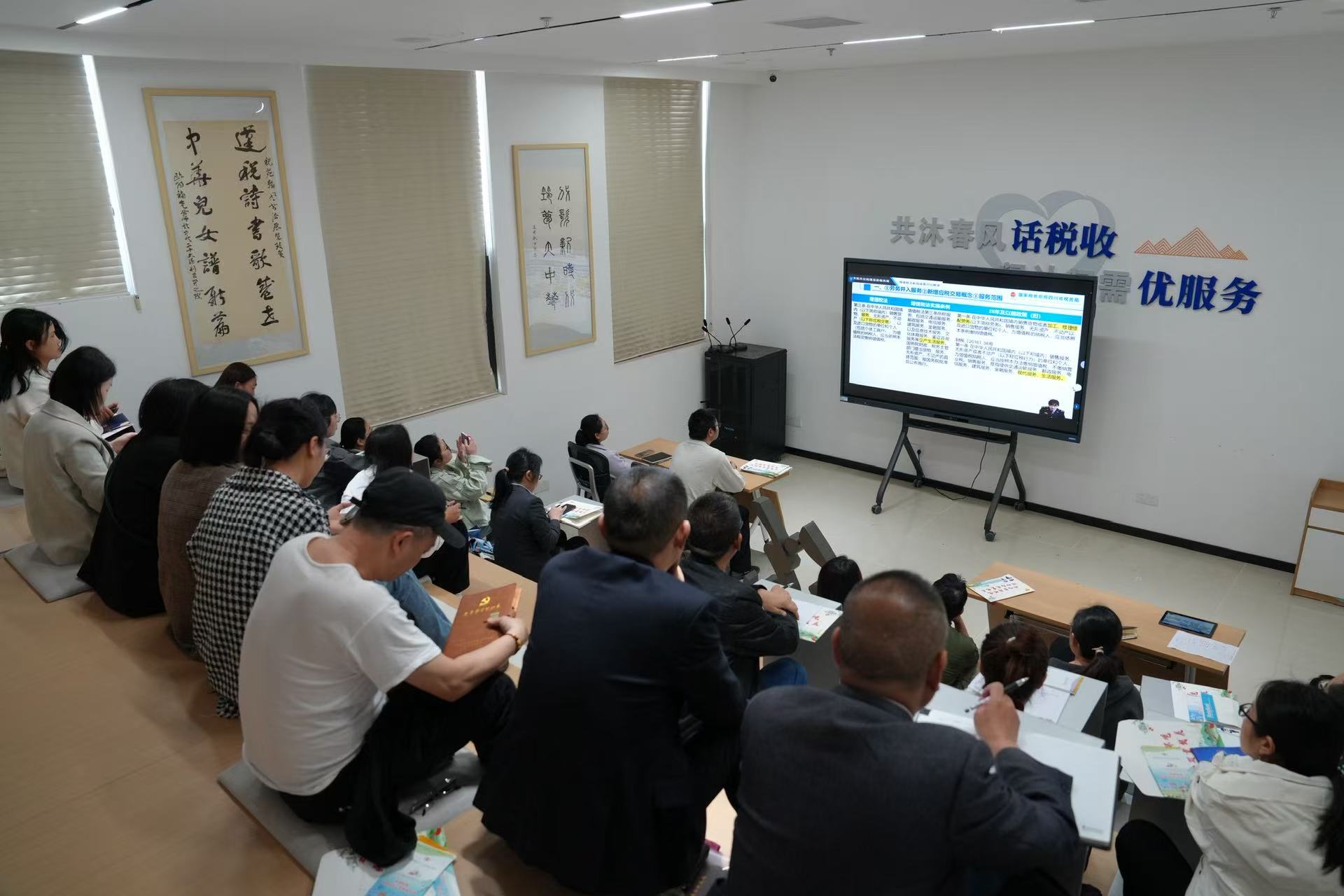线下现场,蓬溪县税务局邀请了二十余家企业代表走进会议室,同步观看直播培训内容,并特别设置“面对面”现场答疑环节。企业财务及办税人员结合自身经营实际,就新政适用中的堵点难点问题踊跃提问。税务干部逐一细致回应、精准解答,实现了“解答一个问题、厘清一类政策、规范一类操作”的辅导效果,切实打通政策落地“最后一公里”。围绕电子税务局税费申报自检功能使用、增值税法及其实施条例作专题讲解,帮助企业更好适应政策变化、防范涉税风险。