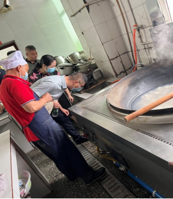 杨合国副局长深入学校食堂储物间、操作间,对食材采购、加工制作、餐具消毒、食品留样等关键环节进行细致检查,对索证索票记录、仓储条件及“明厨亮灶”系统运行情况进行了查看。杨副局长对大竹县月华综合初级中学食堂安全管理方面的务实作风给予充分肯定,他还强调,要继续严格落实校长负责制,认真提升执行“日管控、周排查、月调度”机制,确保食材可追溯、流程全透明、食用安全。