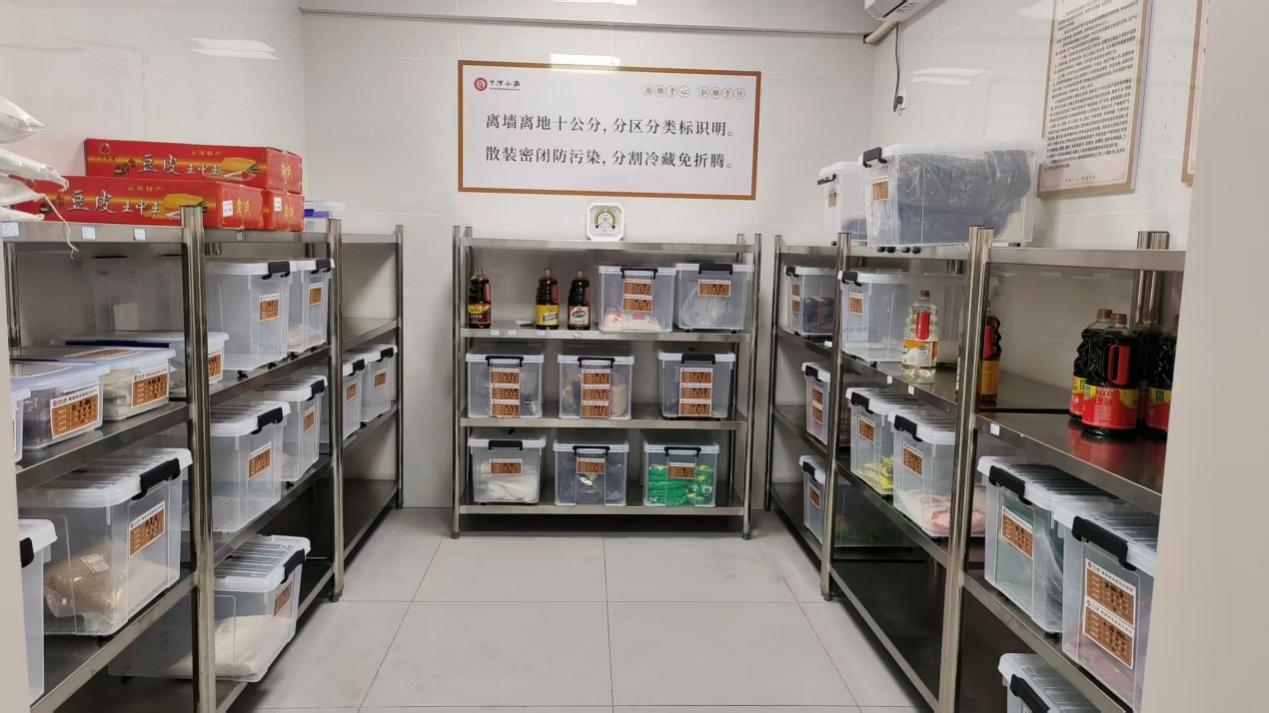 食材验收环节更是半点不马虎,工作人员照着“一看二闻三查四验,五温六抽七记八入库”的“八步诀”,仔细检查食材的新鲜度、规格,核对相关凭证后才会登记入库。