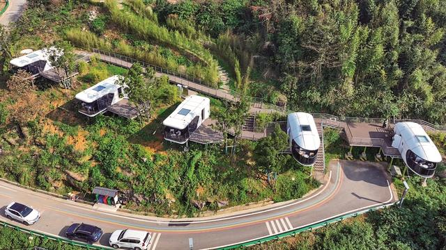 项目设计强调与山林环境融合,力求“推窗见景、出门入林”;在空间布局、功能配套和服务细节上对标“精品”,让“住一晚”成为旅程的高光记忆。项目落地后,将与露营基地、太空舱、树屋酒店等形成互补,为家庭游、周末游、节假日短途度假提供更多选择。