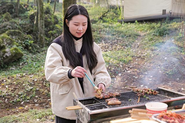 12月11日上午,广安前锋区桂兴镇四方山村,阳光穿过松林的缝隙,在四方山康养旅游度假区的土地上洒下跳跃的光斑。烧烤区内,炭火已噼啪作响,游客围着户外烤台翻烤食材,烟火气与松林清香交织;长椅上,几位游客正慢悠悠地喝着热茶,拉家常,他们的笑声在山谷间荡开细小的回音。“这里环境好,设施又新又全。”游客梅女士说,“等春天花开了,这里会更美,那时候我们还要再来。”