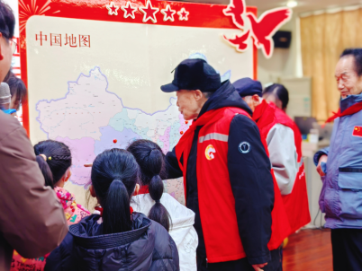 随后进行的“追寻”环节,将活动推向了一个互动高潮。活动现场准备了一幅中国地图,老兵们依次说出自己曾经驻守过的部队地点——雪域高原、边陲哨所、海防前线……一个个遥远而神圣的地名从老兵口中道出。学生们则在地图上寻找、指认,并郑重地贴上鲜红的五角星图钉。每一颗被钉下的五角星,不仅是一个地理坐标的标记,更是一次“精神疆域”的拓展。它让孩子们直观地认识到,课本上的“960万平方公里”,是由无数个具体的哨位、足迹和青春守护的。这个环节,将抽象的爱国情怀,转化为可触摸、可指认的山河脉络。