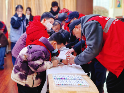 共绘蓝图,展望未来。在“共绘朝阳”环节,一幅象征希望与传承的长卷铺展开来。退役老兵与学生们齐聚画卷两旁,携手执笔,共同描绘。老兵们画出巍峨长城、雄壮山川,勾勒出坚不可摧的国防意象;孩子们则绘出初升的太阳、翱翔的和平鸽、茁壮成长的树木,泼洒下灿烂明媚的未来色彩。一笔一画间,是精神的交融,是希望的传递,一幅军民同心、共迎朝阳的壮美画卷徐徐呈现。