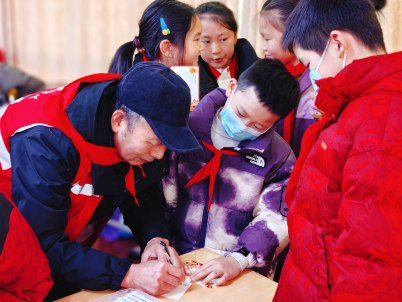 紧接着,活动进入动人的“致敬”环节。解北一小的学生们迈着整齐的步伐,满怀敬意地为在场的退役老兵们佩戴上鲜艳的红领巾。一条条红领巾,不仅系在了老兵的胸前,更联结起了跨越岁月的忠诚与信仰,象征着红色精神的代代相传。老兵们庄严回礼,眼中闪烁着欣慰与感动的光芒。