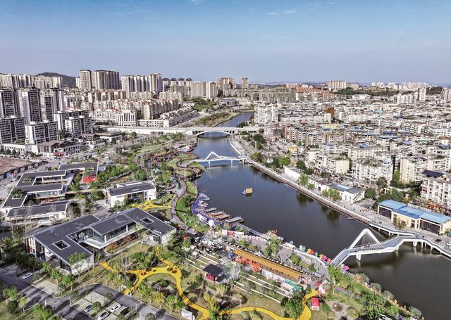 暖阳下的賨城里与民居、西溪河构成一幅美丽的风景画