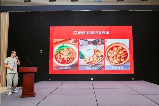 现场,四川无厨供应链的川味粉面浇头、四川美味源食品的汤料调味品、成都洪汇肉业的“酱卤肉”“中式香肠”等地域特色产品,引发商户广泛关注。嘉宾们在品鉴成都风味的同时,就合作细节、渠道拓展、供应链优化等议题展开务实沟通。在商户路演与食材采销沟通环节,成都香香嘴食品负责人周文韬表示,公司正重点拓展外贸业务,希望借助广州外贸优势寻求合作;玉湖冷链商户玉宏和食品负责人江福明随即回应,其企业自90年代起深耕食品外贸,在香港设有办事处且具备出口资质,产品已远销加拿大、美国、澳洲,双方当场达成初步合作意向。