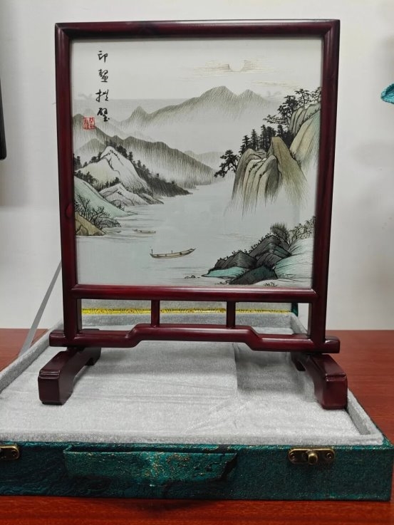活动中,简阳市向洪都拉斯共和国驻华大使萨尔瓦多·蒙卡达阁下赠送了“金简银针”蜀绣非遗礼品。