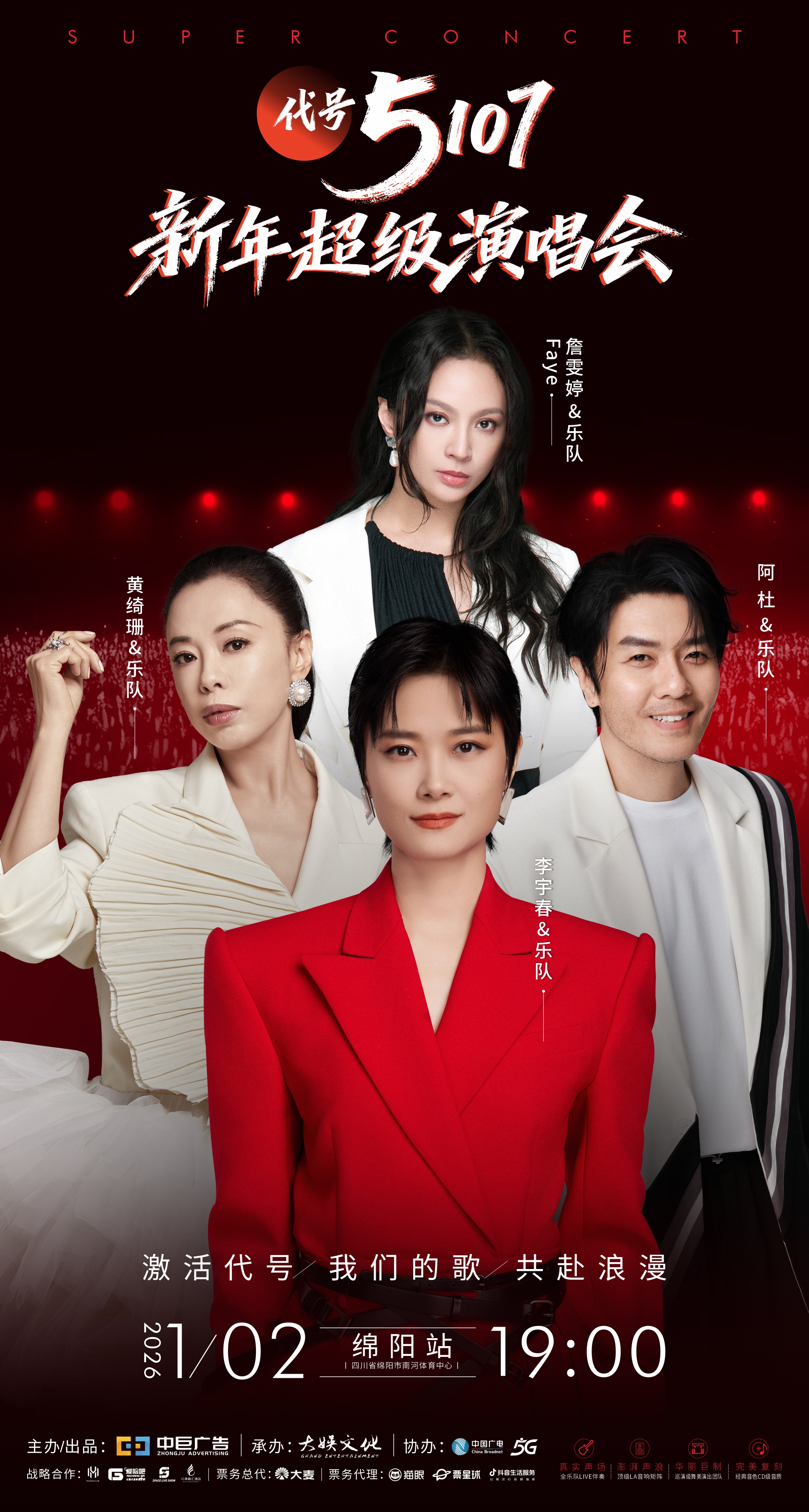 2026年1月2日,"代号5107·新年超级演唱会"将在绵阳市南河体育中心震撼公演。这不仅仅是一场汇聚了李宇春、黄绮珊、阿杜、詹雯婷四位华语乐坛殿堂级歌手的盛会,更是一张发给所有游子与乐迷的"回家请柬"——在新年伊始,用音乐解码这座中国科技城的浪漫基因。